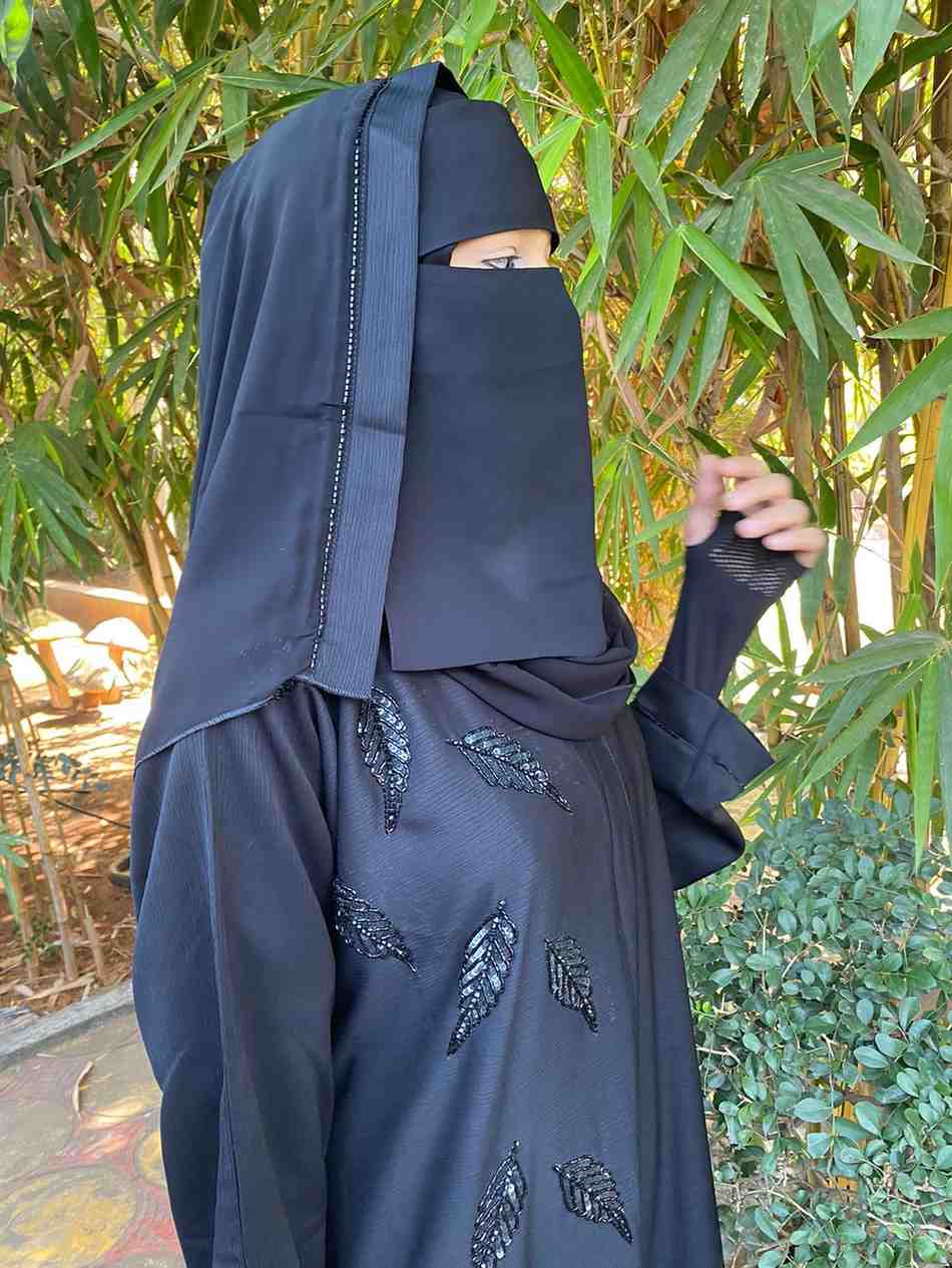 Continuing the theme, the sleeves and scarf are also adorned with matching handwork, creating a cohesive and sophisticated ensemble. The scarf can be draped in various styles, offering versatility and a touch of personal flair to your modest wardrobe.