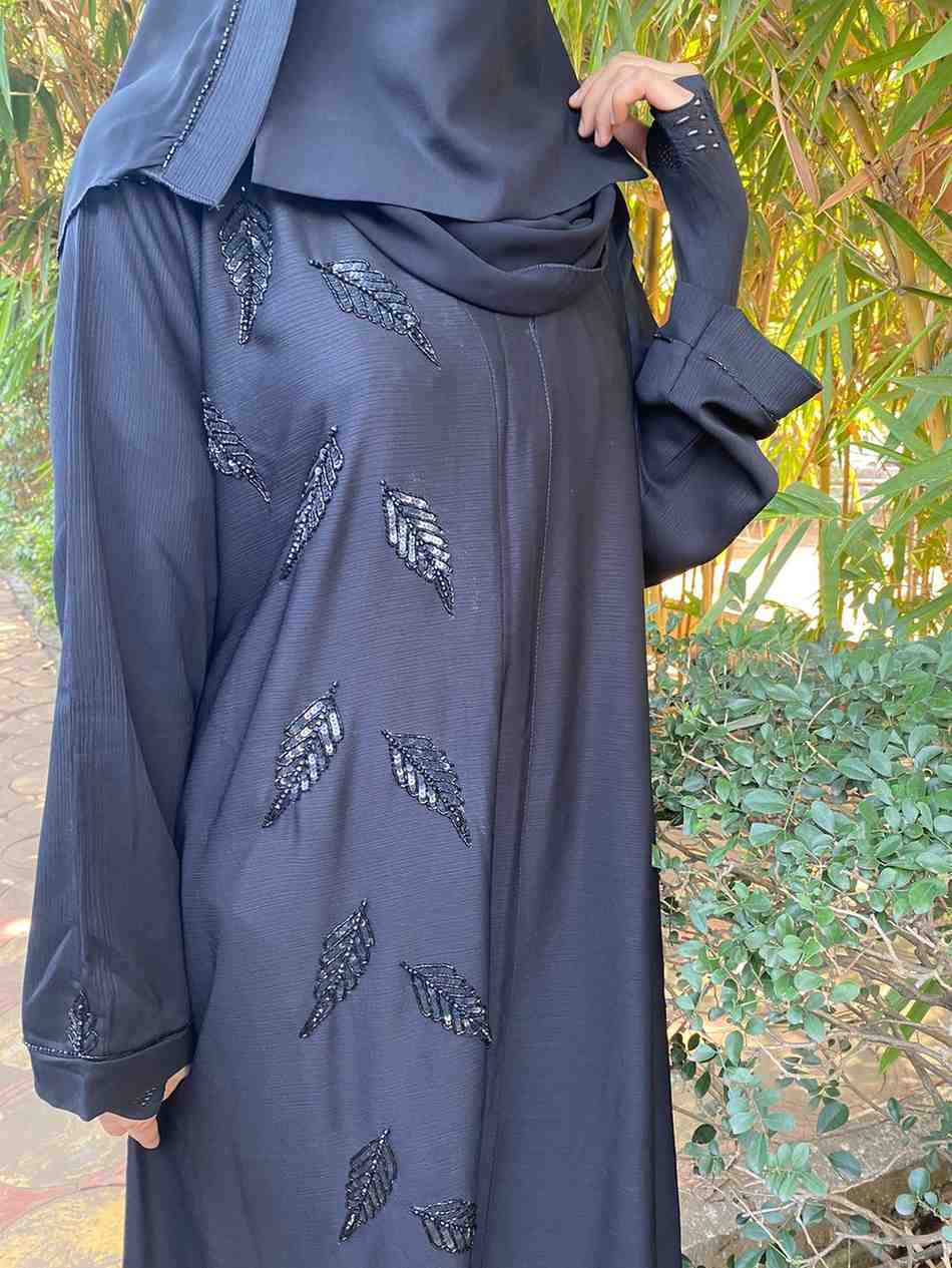 Alfaiza Glittering Leafs Abaya with Handcrafted Japanese Kat Dana & Tikki Embellishment