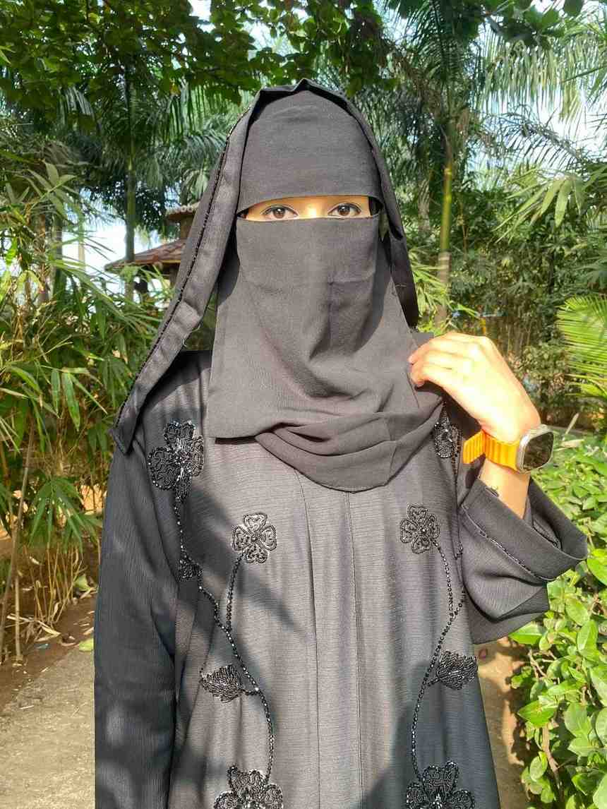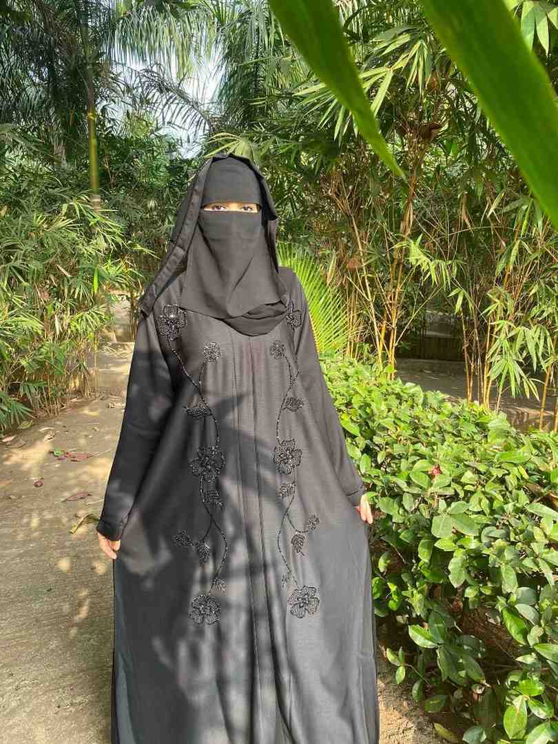 The Alfaiza Silver Salli Abaya presents an amalgamation of tradition and contemporary style. This abaya is a piece of art fashioned from the finest imported zoom material, known for its luxurious texture and elegant fall.
