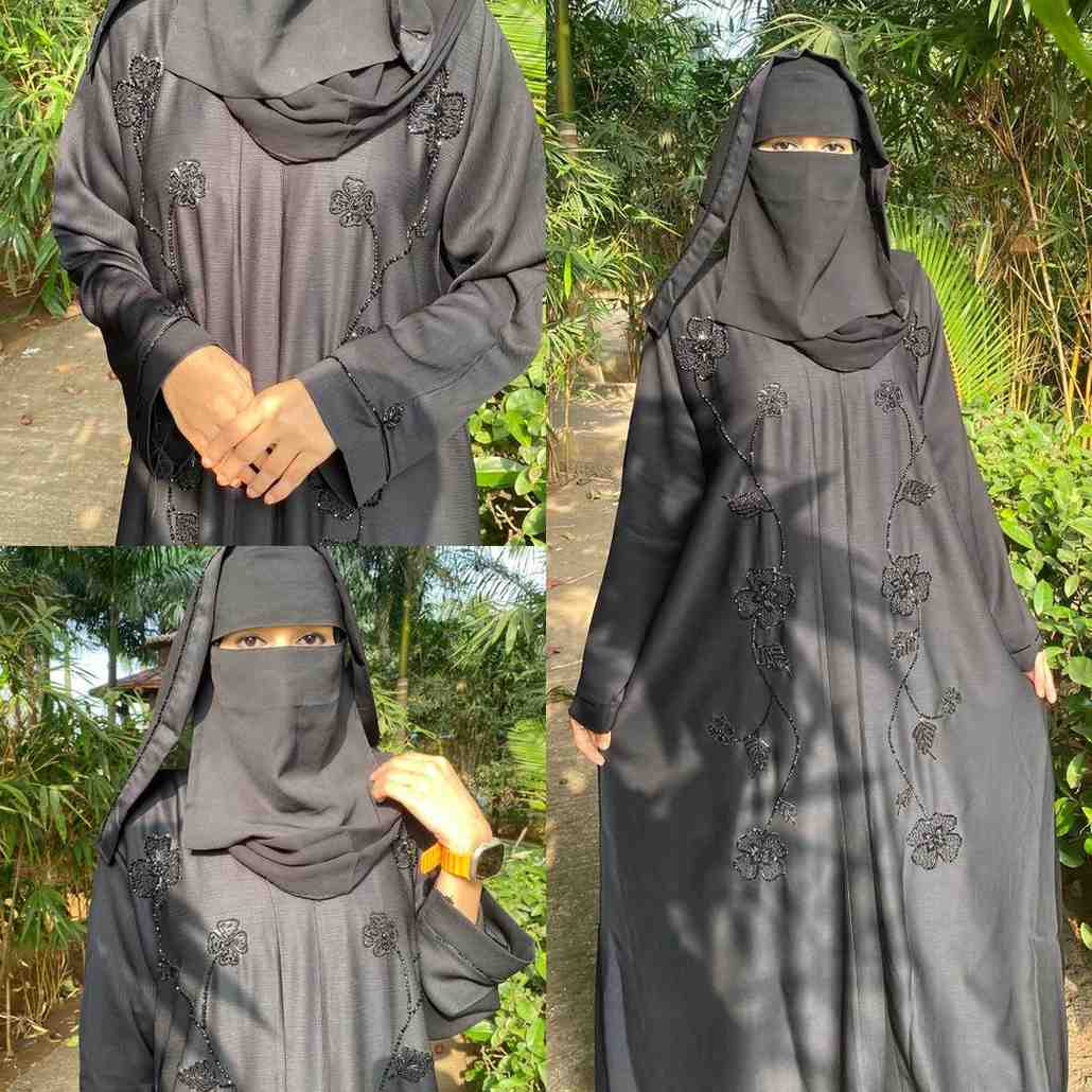 Tailored to fit a variety of sizes, this abaya is available in 52, 54, and 56, ensuring that every woman can find her perfect fit. The Silver Salli Model is designed not just for modesty but for the woman who appreciates the craft behind her attire and desires to express her individuality through her clothing.
